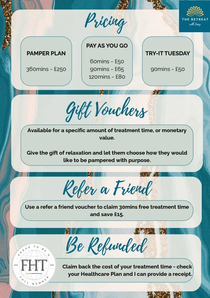 At The Retreat with Tracy, treatments are built around you. Choose your time, then mix and match therapies to suit your needs on the day.